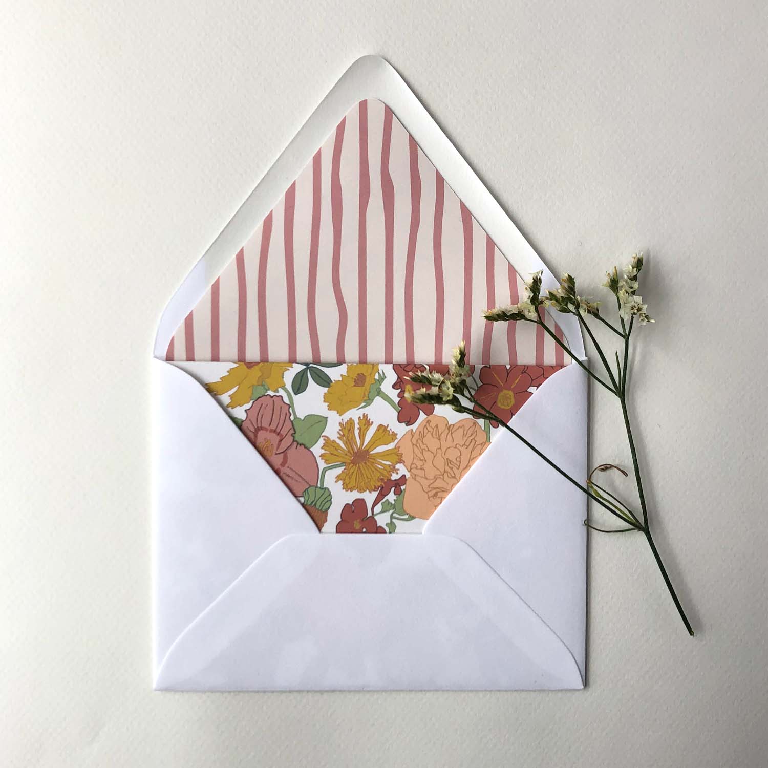 - Brilliant White Euroflap envelopes with coordinating patterned liner