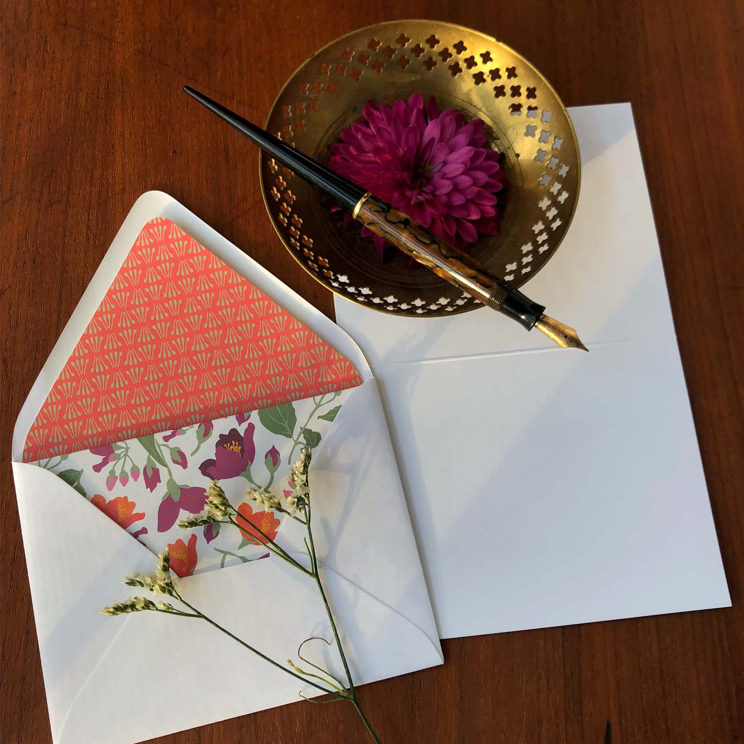 - Brilliant White Euroflap envelopes with coordinating patterned liner