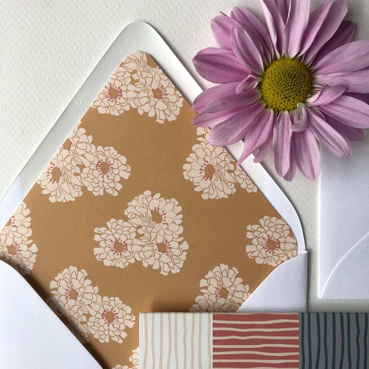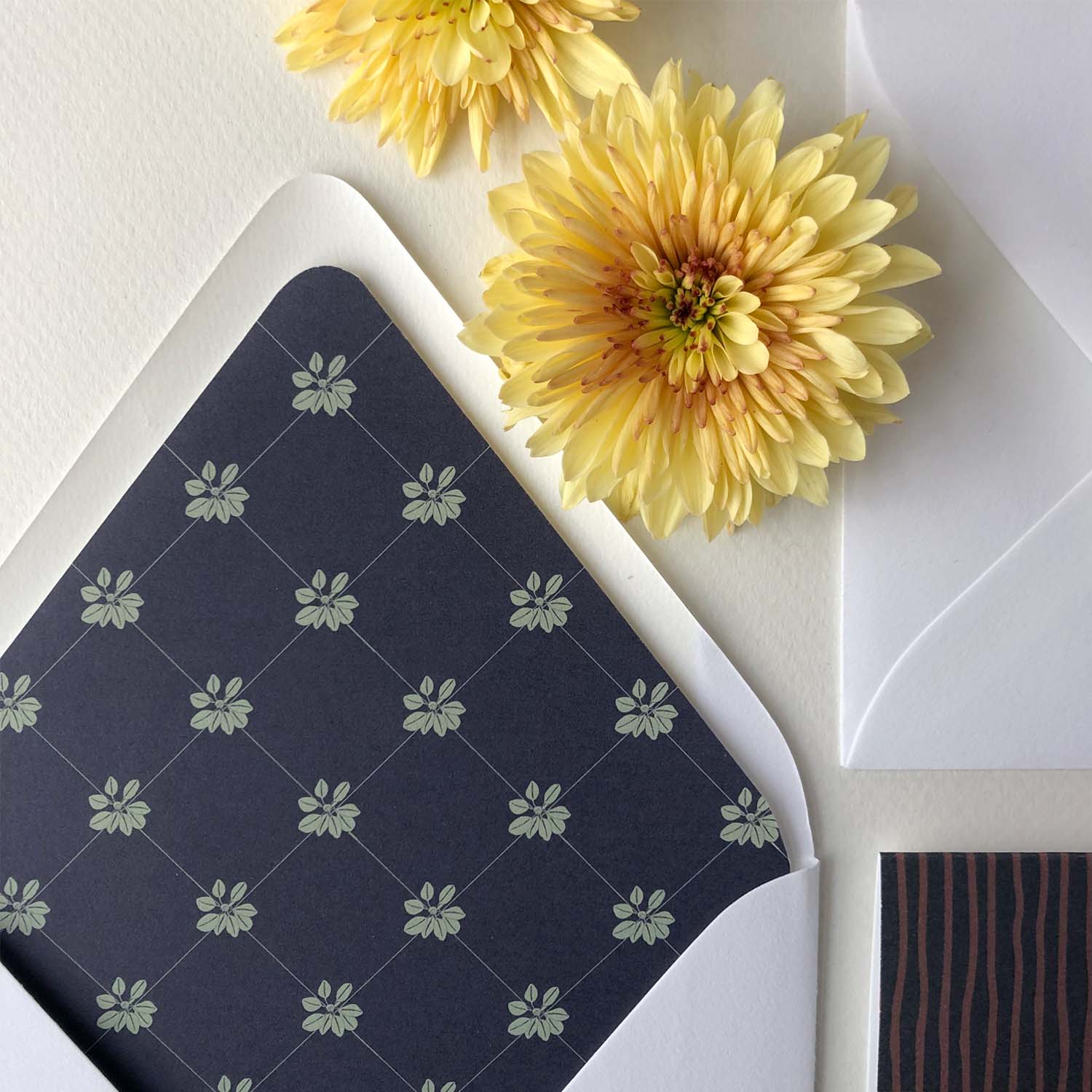 - Brilliant White Euroflap envelopes with coordinating patterned liner