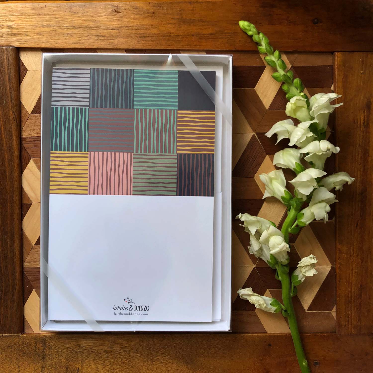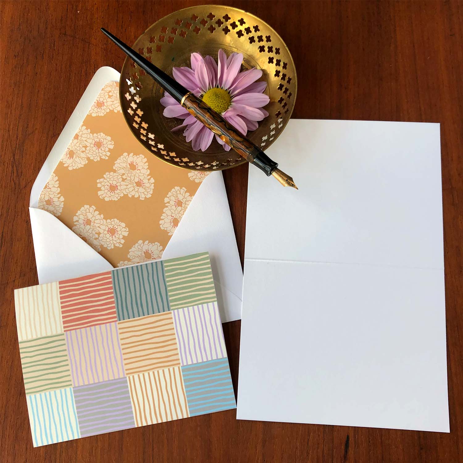 Patchwork Stripe Folded Cards with Lined Envelopes, 10-Count